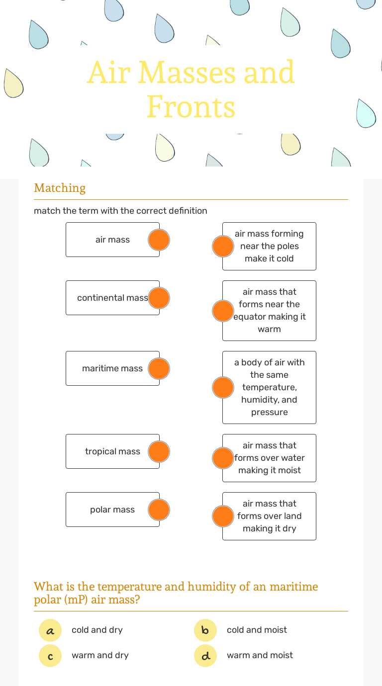 Air masses and fronts worksheet answers Last week, in a Monday, December 3 class, we started learning about air mass and wires. Today we will explore this topic further. You will receive a printed copy of the question below. Visit the website listed below to find answers to each question. You need to record the answers on your paper.