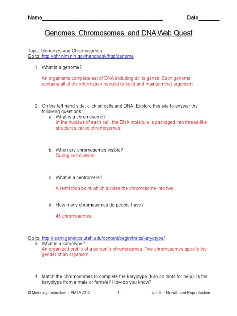 Genes and chromosomes worksheet answers