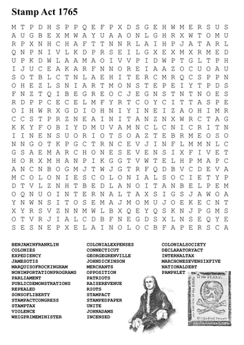 The Stamp act of 1765 Worksheets. Contents 1.The Stamp Act of 1765 Facts 2. Modified TRUE or FALSE 3. Stamp Act Crossword 4. The Stamp Act Maze 5. Its Tax Time 6. The Stamp Act Congress 7. Join or Die 8. The Declaration of Rights and Grievances 9. Picture Analysis