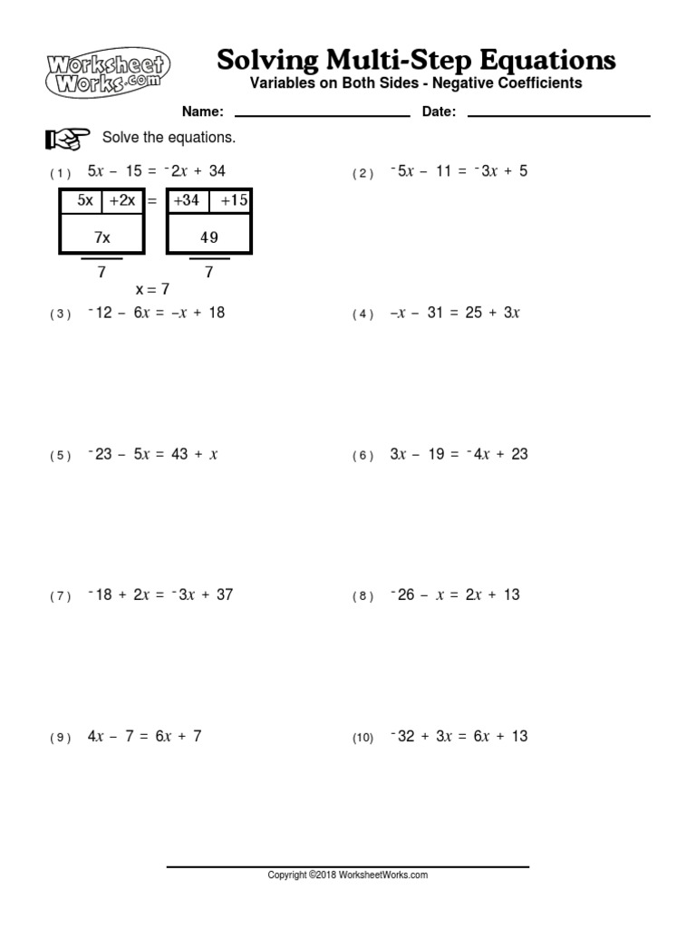 Variable on one side solving two step equations worksheetworks com multi worksheets answers tessshlo worksheet variables both sides negative coefficients free equation solve mathematics pacing resource document indianapolis 2018 07 28mathematics math connects course 2 blue book x distributive property and answer key pdf cursive handwriting ...