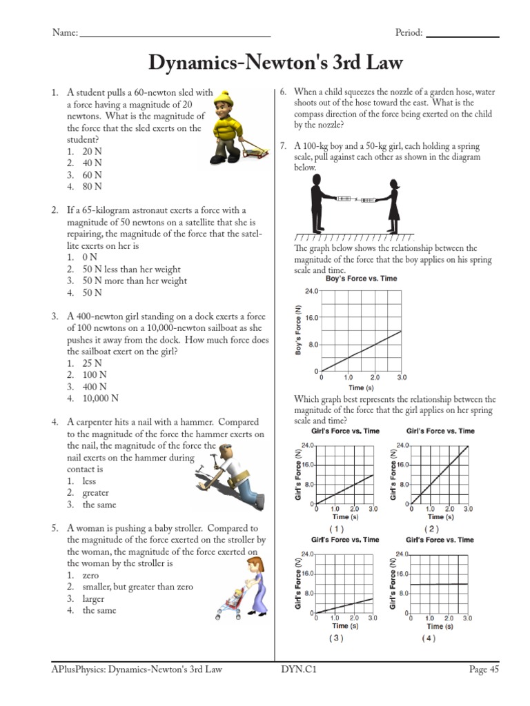 Newtons third law worksheet