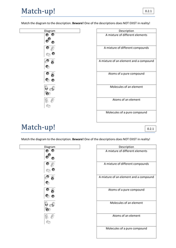 Pure substances and mixtures; elements and compounds. Rationale ... There are three sets of worksheets; the pre-test: Elements, compounds or mixtures?