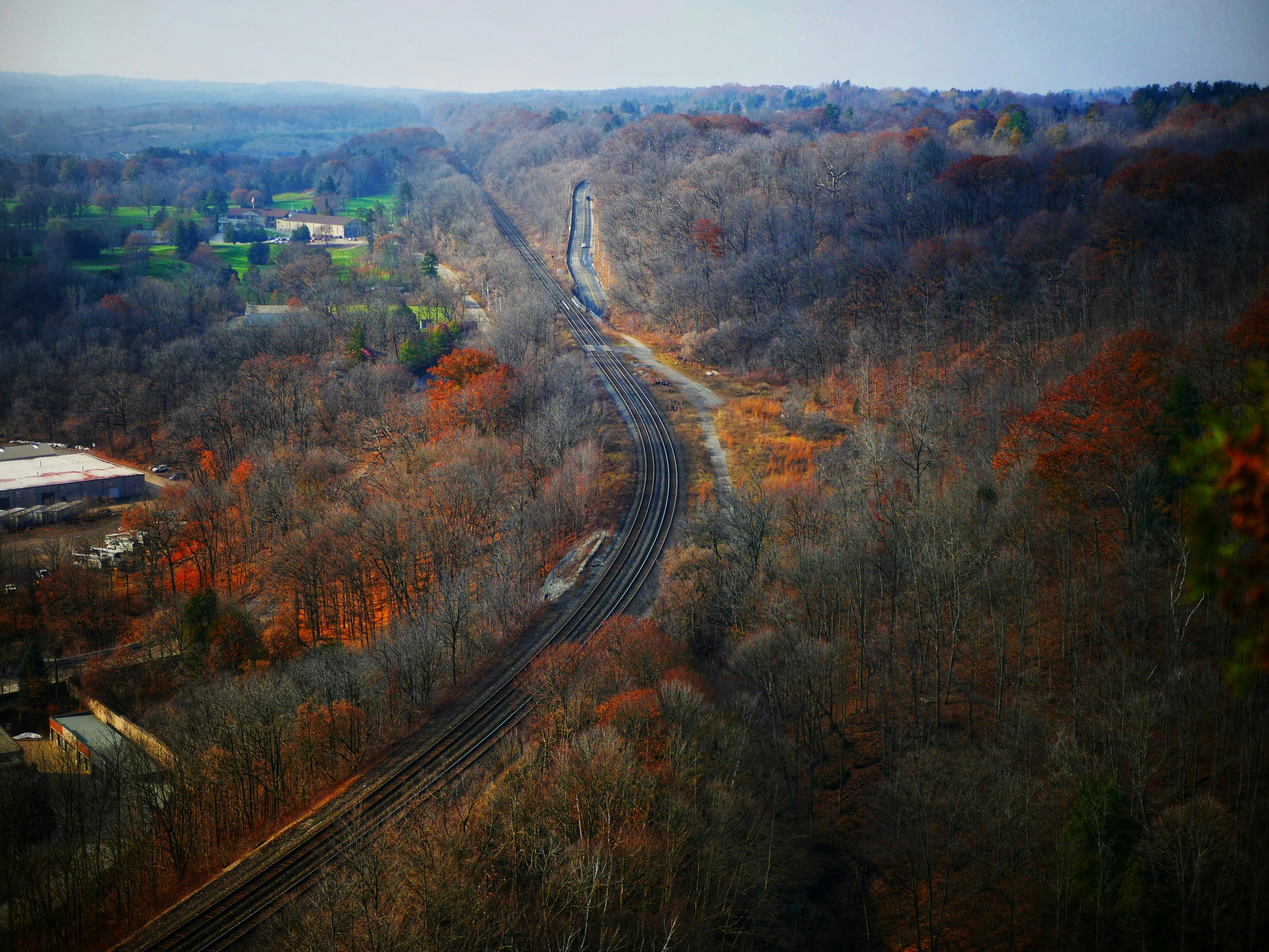 Dundas, a small neat little town near Hamilton. The railway track gives an impression of 18th Century England with green lush farms behind.