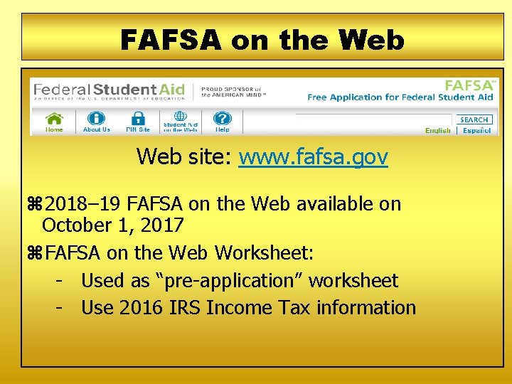We work hard to keep the cost of college low for you. We know you have many options available when choosing a college. The cost of a degree is a key factor in your choice. How much does […] You are required to complete this worksheet because you reported on your Free Application of Federal Student Aid (FAFSA) that you had a conviction of possessing or selling illegal drugs or because you left FAFSA Question 23 blank. Complete this worksheet to determine if you are eligible for federal student aid.