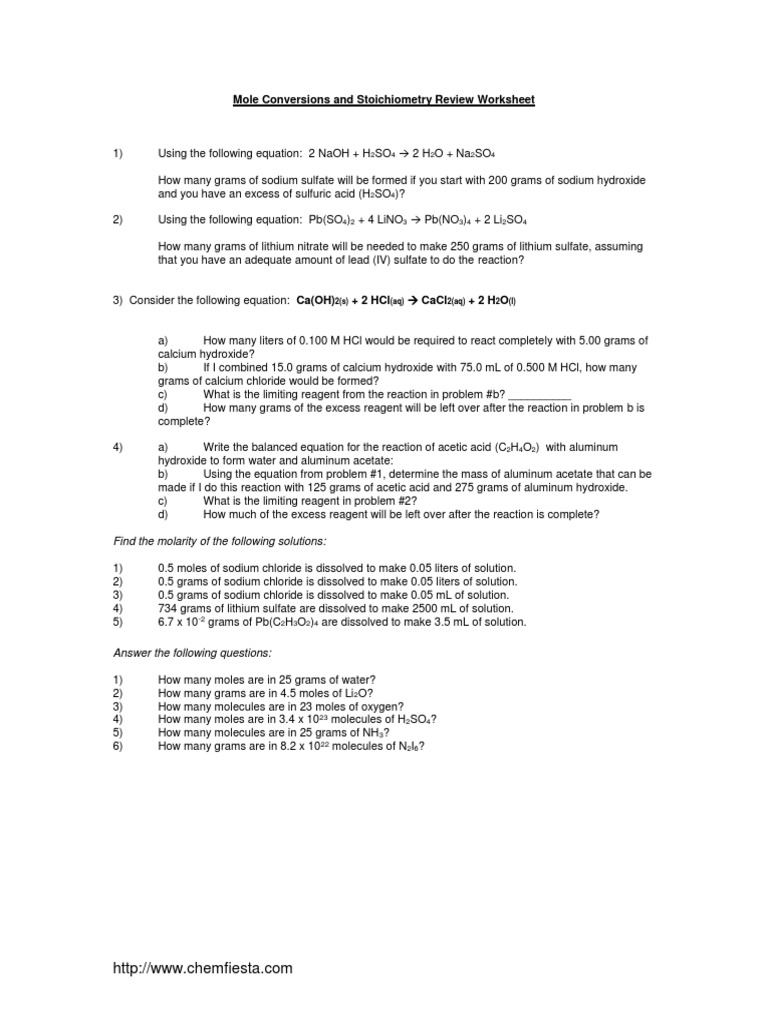 PDF Chemfiesta Answers - app.mentedcosmetics.com Chemfiesta Naming Chemical Compounds Worksheet or ... The short answer: Stoichiometry is how you figure out how much stuff will be made in a chemical reaction, or how much stuff you'll need to use when performing a chemical reaction. The calculations that make this possible make heavy use of chemical equations.