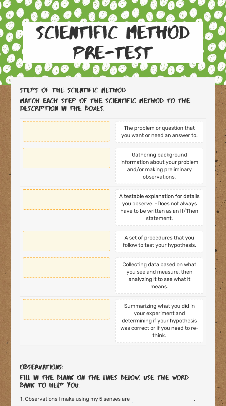 Scientific Method worksheets and online exercises Scientific Method worksheets and online activities. Free interactive exercises to practice online or download as pdf to print.