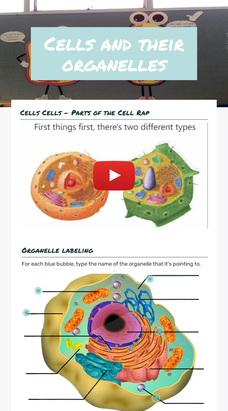 Cells and their organelles | Interactive Worksheet by Addy ... Cells and their organelles Worksheet December 1, 2017 Impact 508 0 Science Biology 7th Grade Use this version, or check out other variations created by teachers from the Wizer community: Original by Maree Timms Use worksheet Cells and their organelles Introduction to Cells Use the information in the videos to help you complete the Wizer worksheet.