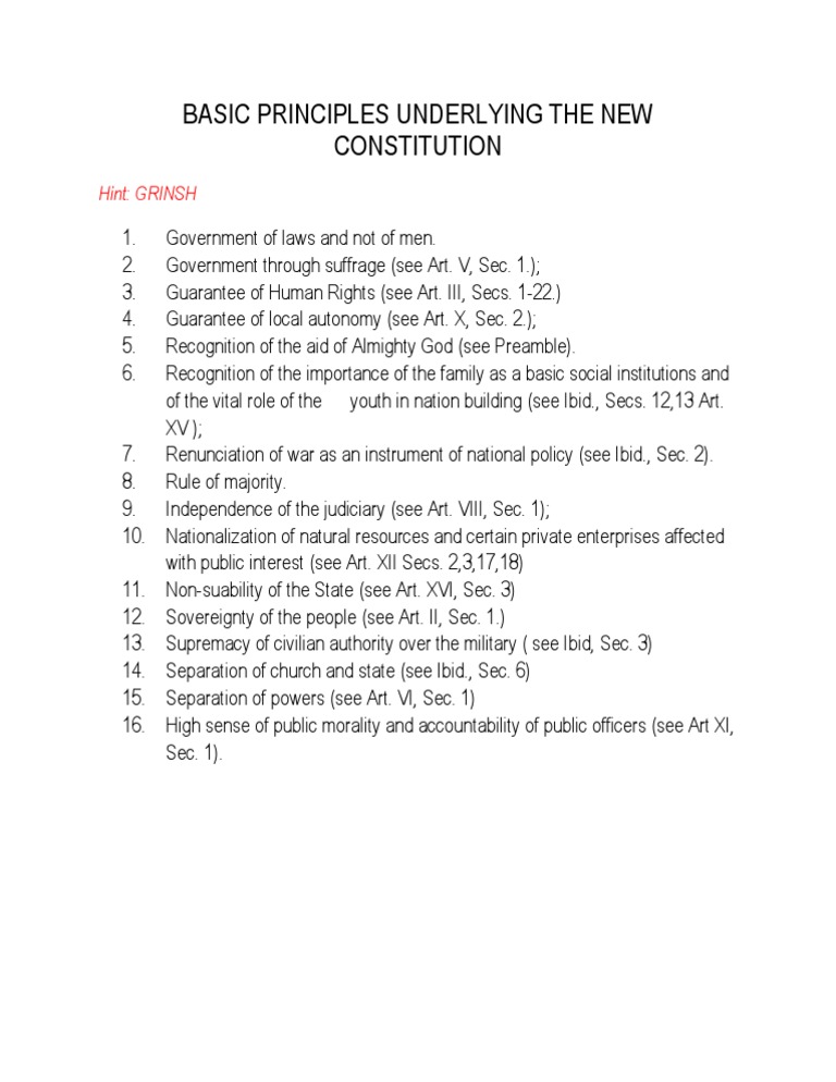 PDF What is a Constitution? Principles and Concepts The vast majority of contemporary constitutions describe the basic principles of the state, the 2. Constitutions can declare and define the nature and authority of the political community. They often declare the state's fundamental principles and assumptions, as well as where its sovereignty lies.