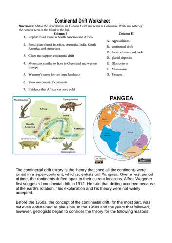 Theory of plate tectonics worksheet
