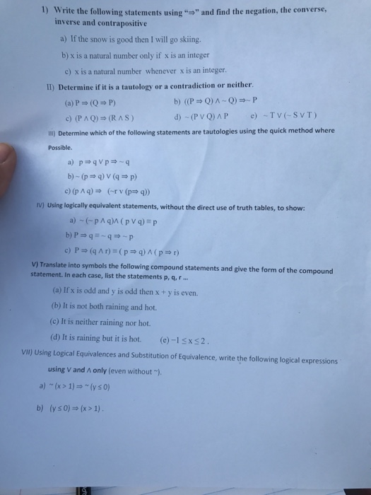 Converse Inverse Contrapositive Worksheet With Answers | Gate ... Tag: Converse Inverse Contrapositive Worksheet With Answers. Converse Inverse Contrapositive | Problems. Propositional Logic. Logical Connectives- ... Write the converse, inverse and contrapositive of the following statements-If today is Sunday, then it is a holiday. If 5x - 1 = 9, then x = 2.