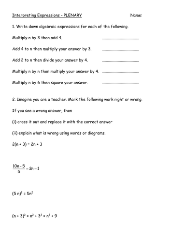Interpreting algebraic expressions worksheet. Interpreting Algebraic Expressions Worksheets Writing a presentable Interpreting Algebraic Expressions Worksheets essay can take hours and Interpreting Algebraic Expressions Worksheets days. Even experienced scholars struggle to complete a decent Interpreting Algebraic Expressions Worksheets work in short order. If you want your text to be readable, to carry meaningful research and fresh ideas, to meet the initial requirements, remember ... Interpreting Algebraic Expressions Lesson Plan for 9th ... This Interpreting Algebraic Expressions lesson plan also includes: Interpreting algebraic expressions is a fundamental skill in beginning algebra. This lesson approaches the task in numerous ways. First, learners assess their understanding with a short worksheet on converting between words and expressions. Interpreting Algebraic Expressions - mathshell.org Interpreting Expressions 1. Write algebraic expressions for each of the following: a. nMultiply by 5 then add 4. b. Add 4 to nthen multiply by 5. c. Add 4 to nthen divide by 5. d. nMultiply by nthen multiply by 3. e. Multiply nby 3 then square the result. 2. Interpreting Algebraic Expressions Worksheets Interpreting Algebraic Expressions Worksheets, Aqa Eng Lit Past Papers, Written Maths Problems, Outline Essay About Immigrants Your phone * 9 Sep 2019 Topic title: "Writer's Choice ".