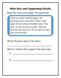 Understanding the main idea using this worksheet This main idea worksheet has your students explore the main idea, supporting details, the purpose of the text, and has your students think of three questions to ask somebody else who has read this text. Feel free to check out our full range of fourth-grade Main Idea and Details learning resources.