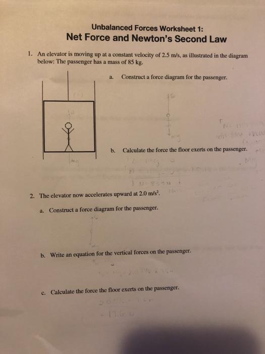 Practice Worksheet Net Force And Acceleration - Practice ... Practice Worksheet Net Force And Acceleration - Kids love to practice their reproduction realities, however they can't always memorize them all. Worksheets are the very best means to educate them these truths. Attempt to enhance the lesson with real-life instances. These instances are more relatable to kids and also most likely to be memorized. DOC Forces Worksheet - Winston-Salem/Forsyth County Schools Determine the net force acting on the object and . calculate the acceleration of the object. SOLUTIONS TO 1-13 FORCE PROBLEMS. 1. How much force is needed to accelerate a 66 kg skier at 2 m/sec2? f=ma f= 66 x 2 f = 132 N. 2. What is the force on a 1000 kg elevator that is falling freely at 9.8 m/sec2? F= ma f= 1000 x 9.8 f=9,800 n. 3. Force MCQ worksheet (Physics) | Multiple Choice Questions ... 7) Which pair of forces in question 5 produces a net force of zero? a. a b. b c. c d. d. Multiple Choice Answers for MCQ worksheet - Fundamentals of Force. d; b; c; c; a; b; a; MCQ worksheet - Friction or frictional force. 1) Friction occurs because a. all surfaces have some roughness. b. Net Force Particle Model Worksheet 4 › Free Worksheet by ... Physics P Worksheet 8-5. Net force particle model worksheet 4 answers. Nuclear model of the atom. Newtons 2nd Law and Component Forces 1. We will assume that friction is small enough that it can be ignored. A rollercoaster car 300 kg with passengers accelerates down a 65 hill. If you dont see any interesting for you use our search form on bottom.