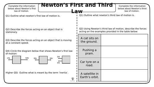 PF1.1 Newton's laws of motion | Learning Lab Newtons 1st law of motion. Every object continues to be at rest, or continues with constant velocity, unless it experiences an unbalanced force. As it did to the author of this worksheet when he was 13 years old. Newton's 3rd law of motion. When two objects interact, the forces they exert on each...