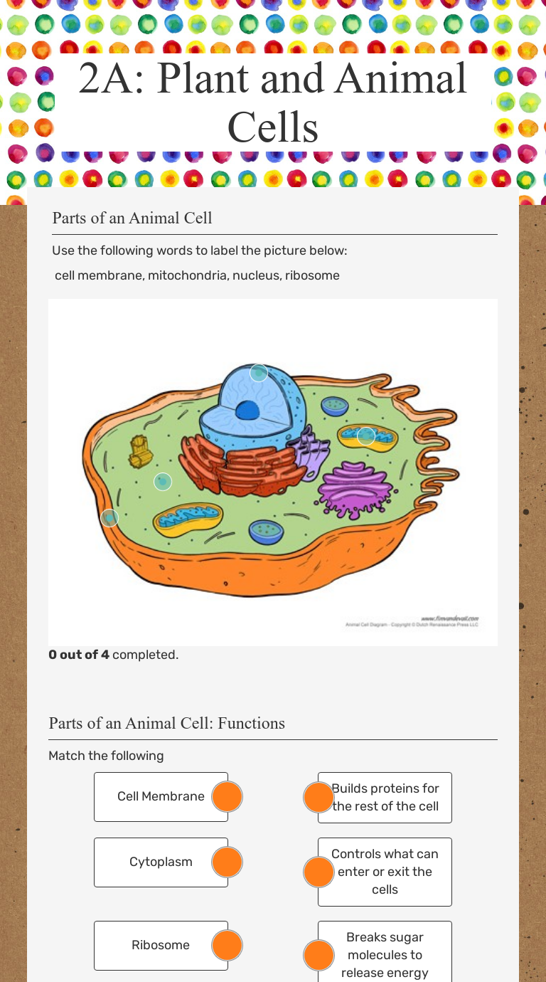 Plant and animal cell worksheet. Comparing plant and animal cells Overview: cells are not small planar structures! They are dynamic, three-dimensional bags of fluid containing a host of exciting organelles and chemical reactions. Key Stage 3 activity on labelling animal, plant and specialised cells.Students are given a worksheet showing basic animal cells. Animal and Plant Cells Worksheet | Homeschooldressage.com Plant And Animal Cell Diagram Worksheet Free Worksheets Library from Animal And Plant Cells Worksheet, source:comprar-en-internet.net. plant and animal cells not labeled Google Search from Animal And Plant Cells Worksheet, source:pinterest.com. Plant and Animal Cell Worksheets Free Science Worksheets >. Plant and Animal Cell Worksheets. A cell is the basic unit of life. There are two uniquely formed and often studied cell types. They both have a defined nucleus, cell membrane, and are protected by cytoplasm. Cell Facts, Information & Worksheet | Animals, Human & Plants Cell (Biology) facts & worksheets. Includes lesson plans & study material resources. Available in PDF & Google Slides format. These worksheets have been specifically designed for use with any international curriculum. You can use these worksheets as-is, or edit them using Google Slides to...