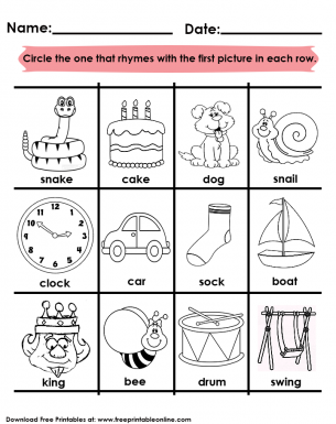Free Preschool & Kindergarten Rhyming Worksheets ... Rhyming worksheets for preschool and kindergarten. These free worksheets help kids learn about and have fun with rhyming while at the same time improving skills in vocabulary and phonics. Printable pdf worksheets courtesy of K5 Learning. No login required.