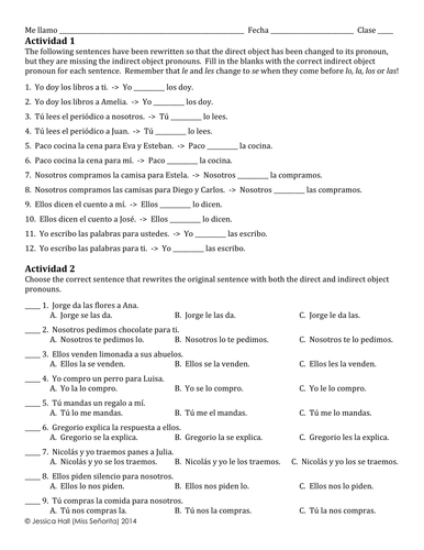 Awesome Double Object Pronouns Spanish Worksheet - Goal ... Displaying top 8 worksheets found for - Double Object Pronouns In Spanish. When using both a direct object pronoun and an indirect object pronoun in the same sentence the indirect object pronoun comes first. He gives it to me. Students can work individually or in pairs to solve the exercises on this worksheet.