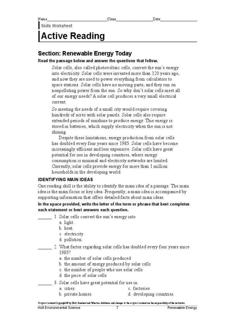 Skills worksheet active reading. PDF Skills Worksheet Active Reading - Mrs. Nolan- Life Science Active Reading SECTION: ENERGY FLOW IN ECOSYSTEMS 1. a 2. a 3. a 4. b 5. carbohydrates 6. photosynthesis 7. 3 8. 1 9. 5 10. 2 11. 4 12. b 13. a 14. c SECTION: THE CYCLING OF MATERIALS 1. fossil fuels 2. carbon dioxide 3. vehicles 4. six billion metric tons 5. Answers may vary. The author wants to point out how much fuel people in the United ... Active Reading - Pcmac One reading skill is the ability to identify the main idea of a passage. The main idea is the main focus or key idea. ... Active Reading. Skills Worksheet ...3 pages analysistabs.com › excel-vba › activesheetVBA ActiveSheet - Excel Active Sheet Object Aug 06, 2019 · Set a Worksheet as Active Sheet in VBA. You can use Activate method to set worksheet as active sheet in VBA. For example, you can set the Sheet 3 as active sheet by calling the Activate Method. Sheets(3).Activate. Reading the Data from ActiveSheet. We can use the VBA to read the data from ActiveSheet Object. We can use all the methods and ... PDF Skills Worksheet Active Reading RECOGNIZING CAUSE AND EFFECT One reading skill is the ability to recognize cause and effect. Read each question and write the answer in the space provided. 10. Name two reasons why incinerators are the most expensive form of waste disposal. 11. Why must incinerators be carefully monitored? 12.