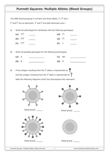 Blood Type Genetics Worksheet | Teachers Pay Teachers This worksheet will prepare students to solve codominance inheritance problems using ABO blood types. By completing this classical genetics activity, biology students will learn how to set up a Punnett square using alleles to solve for the genotypes and phenotypes of several crosses.