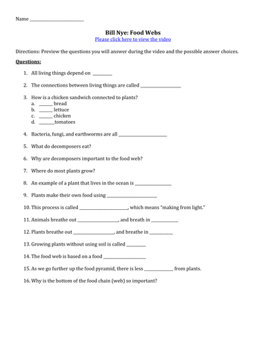 Bill nye nutrition video worksheet answers