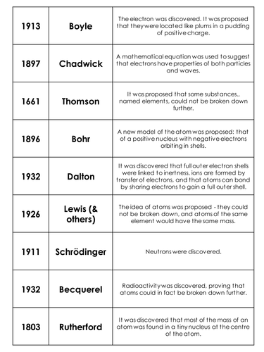 DOCX Saint Louis Public Schools / Homepage Chemistry Unit 3 Atoms and the Periodic Table Name: _____ Atomic History Worksheet . Complete the following . Summary . table with the contribution of each scientist and the Atomic Structure the. y were using: Logical bits of matter, Solid Spheres, Plum Pudding, Nuclear. Model, Bohr Model . or . Quantum Mechanics