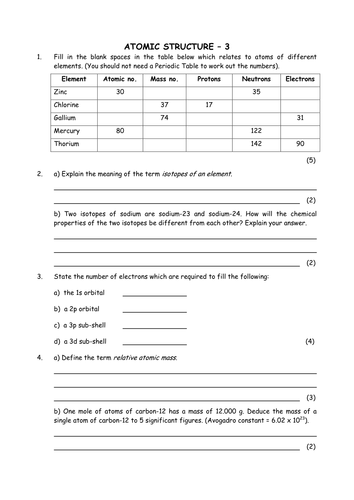 Chemistry Atomic Structure Worksheet | Teachers Pay Teachers Chemistry - Atomic Structure Worksheet by ItsBobbyBola 2 $1.50 PDF This worksheet will help students recall their knowledge and ensure they remember the basics of chemistry. This will require students to be able to understand the basics of an atom, isotopes and electronic structures.Starter activityIndependent worksheetRecap Subjects: Chemistry