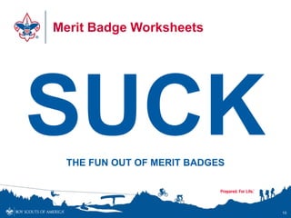 Family Life Merit Badge Via Zoom! 2022 Get In Touch. Colorado Adventure Point 10455 W 6th Avenue, Suite 150 Denver, CO 80215 720.266.2143 Boy Scouts of America - Troop 990 - Merit Badges Scouts earn a merit badge by satisfying specified criteria and receive their badge at the next a Court of Honor. Scouts must earn a total of 21 merit badges for the Eagle Scout rank, 13 of which must be from a mandatory list. You can start a merit badge either (1) by yourself, (2) with a Troop 990-run program, (3) at a BSA camp, or (4) at an ... Personal Management Merit Badge Helps and Documents - Scouter Mom Personal Management Merit Badge Worksheet. Download the Requirements. ... Personal Management Merit Badge Requirement 1: Family Purchase. Requirement 1 Helps and Answers. Some Ways to Save Money for a Purchase. Shopping Strategy. ... Life insurance is a contract in which an insurer, in exchange for a premium, guarantees payment to an insured ... Lifesaving Merit Badge Helps and Documents - Scouter Mom Find specific helps for some of the Lifesaving merit badge requirements listed below. Some of these resources will just give the answers. Others will provide engaging ways for older Scouts to introduce these concepts to new Scouts. Ask Scouter Mom a question or share your ideas with others Lifesaving Merit Badge Requirement 1: Safe Swim Defense