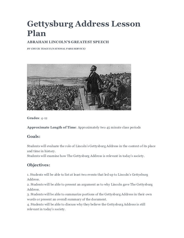 PDF The Gettysburg Address - FMHS ENGLISH DEPARTMENT LESSON 1: UNDERSTANDING THE GETTYSBURG ADDRESS Objectives • Name three important concepts Lincoln laid out in the Gettysburg Address. • Apply word analysis and vocabulary skills to comprehend selections. • Define unfamiliar vocabulary using a dictionary or thesaurus. • Apply reading strategies to improve understanding and fluency.