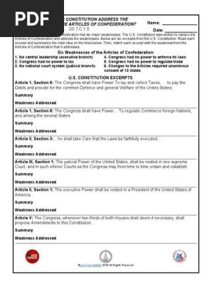 Classroom Resource Library | The National Constitution Center 1.5 Info Brief: Possible Quote for Worksheet. ... Key Terms - Separation of Powers, Checks and Balances, and Federalism ... Articles of Confederation. The first ...