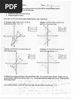 1_Multiple Transformations.pdf - Name _ Date _ Period View 1_Multiple Transformations.pdf from MATH 47524Y-8 at Lambert High School. Name _ Date _ Period _ Geometry - Multiple Transformations The following worksheet is for you to practice how to do. Study Resources. Main Menu; by School; ... if you want to get the correct answer, should you do the transformations in the order given?