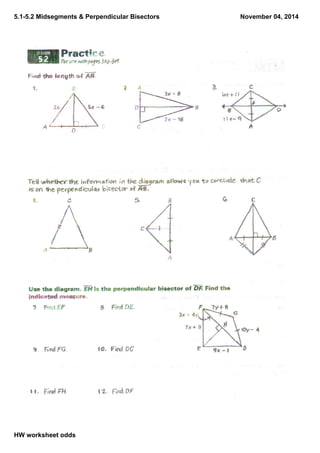 Midsegments of triangles worksheet answers