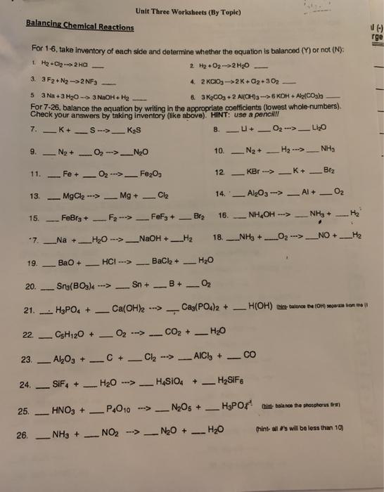 Balancing chemical reactions worksheet