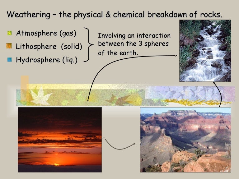 PDF Weathering Experiments • observe the processes of mechanical and chemical weathering of "rocks." Prior Knowledge Needed by the Students • Students should have an introductory understanding that rocks go through changes. • Students should understand the difference between physical and chemical changes. Procedure . Engage . 1.