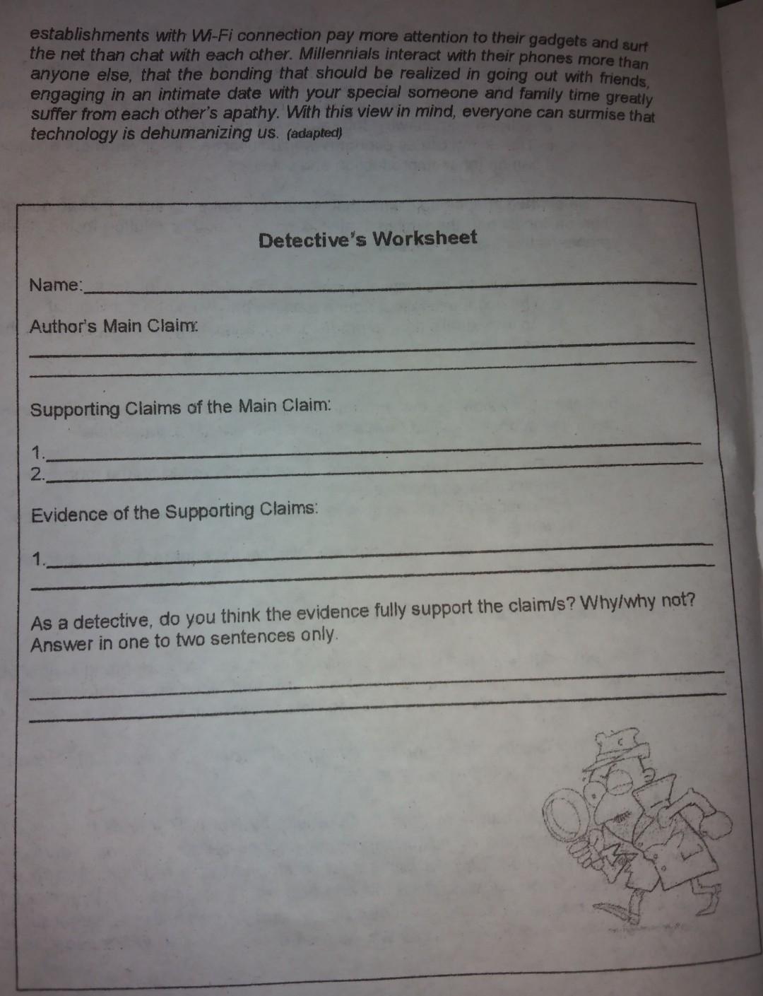 Text dependent questions worksheet. Articles - Scholastic Article. How to Create a Culture of Kindness in Your Classroom Using The Dot and Ish. Use these classic books and fun activities to encourage your students to lift one another up — and to let their natural creativity run wild! Text Dependent Questions for Independent Reading | Worksheet Text dependent questions are reading comprehension questions that can only be answered by referring to the text. Students have to read the text closely and ... Understanding Text-Dependent Questions - Achievethecore.org Shift # 2: Text-Dependent Questions. Regular practice with complex text and its academic language; Reading, writing, and speaking grounded in evidence from ... Publication 972 (2020), Child Tax Credit and Credit for Other ... Line 14 Worksheet. Summary: This is the Line 14 Worksheet used to determine the amount to be entered on line 14 of the Child Tax Credit and Credit for Other Dependents Worksheet. Before you begin: Complete the Earned Income Worksheet, later in this publication, 1040 and 1040-SR filers.