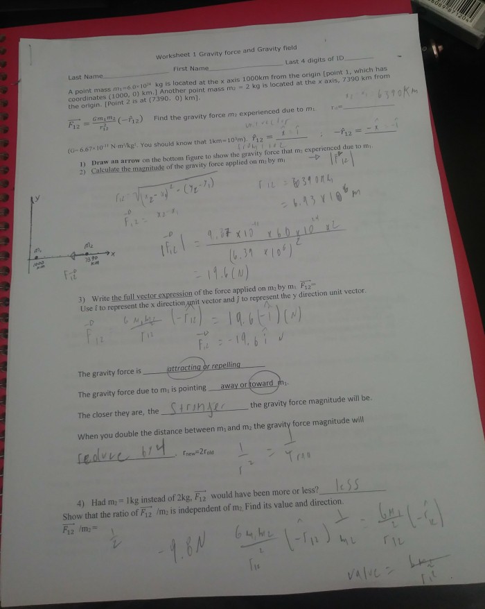 Gravitational force worksheet answers