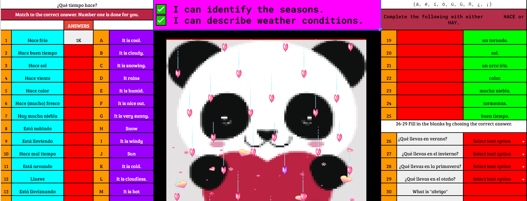 Que tiempo hace worksheet answers