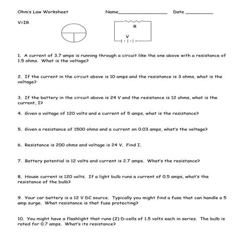 Ohm's law worksheet answers