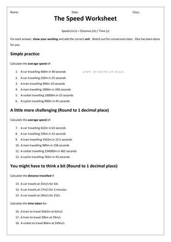 Speed, Distance, and Time Worksheets - Math Worksheets 4 Kids Speed, Distance, and Time Worksheets. Pacy and fun, our pdf speed, distance, and time worksheets ensure children in grade 6, grade 7, and grade 8 have what it takes to remain well ahead of their peers! Let them use the given measures and apply the correct formula to obtain the unknown measure. Hold the child spellbound with sure-to-help-upskill ...