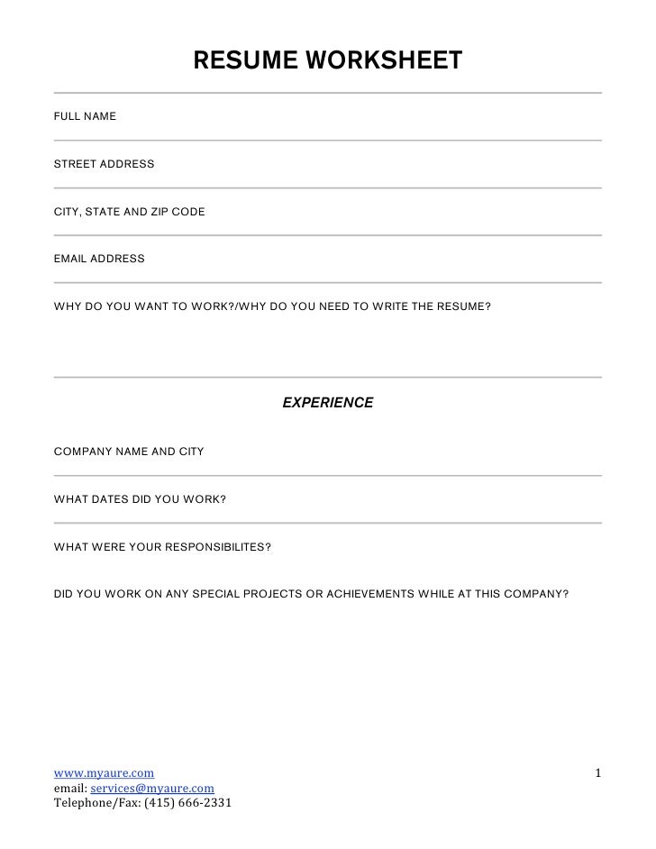 RESUME WORKSHEET After your heading, sequence the information on your résumé from most important to least important with regard to supporting your career objective. Heading. A Resume Worksheet to Jumpstart Your Job Search | The Muse Aug 6, 2020 ... Writing a resume can be a daunting task. This fill-in-the-blank resume worksheet can help make it easier. 19 English ESL worksheets pdf & doc: resume - ISL Collective A selection of English ESL resume printables.