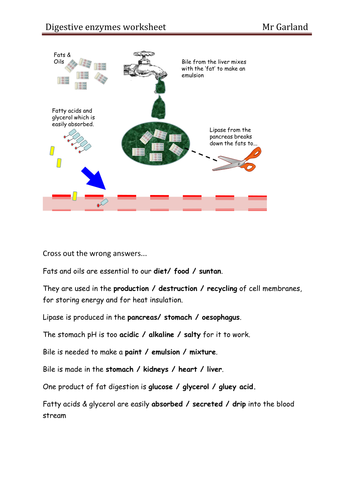 Digestive Enzymes - Worksheet #12 Answers - Squarespace Digestive Enzymes. 1. Why do we need enzymes to help with digestion? They help us break down large molecules into smaller molecules by catalysing reactions, ... GCSE Biology (9-1) - Digestive Enzymes - Worksheet GCSE Biology (9-1) - Digestive Enzymes - Worksheet Subject: Biology Age range: 14-16 Resource type: Worksheet/Activity 6 reviews File previews pdf, 115.07 KB pdf, 117.34 KB This worksheet explores where digestive enzymes are made, what they breakdown, and what they produce. Creative Commons "NoDerivatives"