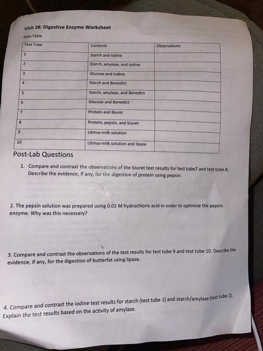 Digestive enzymes worksheet answers