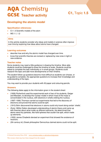 History of the Atom | Teaching Resources History of the Atom Subject: Chemistry Age range: 14-16 Resource type: Worksheet/Activity 1 review File previews pdf, 440.07 KB A student friendly fact sheet relating to the history of the atom. Introduce your students to the idea of the idea of the atom being developed over a period of time with this fact sheet and worksheet resource.