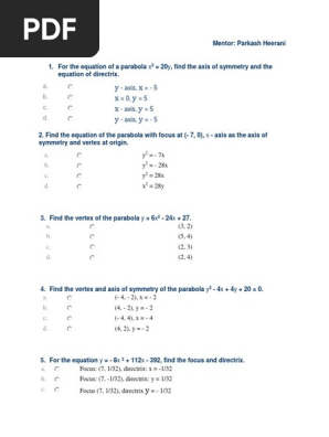 Finding the Equation of a Parabola from the Focus and Directrix - Study.com Finding the Equation of a Parabola from the Focus and Directrix - Quiz & Worksheet Video Quiz Course Try it risk-free for 30 days Instructions: Choose an answer and hit 'next'. You will receive... Focus And Directrix Worksheet - Printable Worksheet Template Focus And Directrix Worksheet - Printable worksheets are a valuable school room tool. They not basically supplement your teaching, but additionally provide you with a quantifiable technique for monitoring how good your students are learning. Listed here are the 10 methods printable worksheets make getting to know extra productive: 1.
