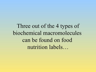 Macromolecules and Food Labels questions & answers for ... - Quizizz Find and create gamified quizzes, lessons, presentations, and flashcards for students, employees, and everyone else. Get started for free!