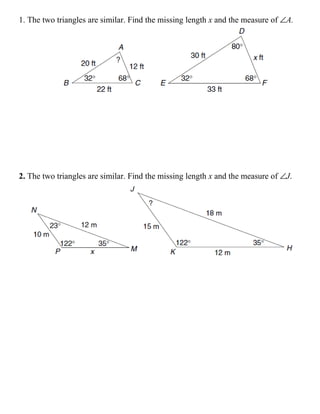 PDF 7.2 similar polygons worksheet answers 7.2 similar polygons worksheet answers Calculating simple interest is an essential skill for anyone who maintains a bank account, carries a credit card balance, or applies for a loan. The free printable worksheets in this lesson will improve your homeschool math lessons and help your students become better at calculations. WS - 7.2 - Similar Polygons - ANSWERS.pdf - ~ ~ ~/(~J~-... Determine whether the polygons are similar. 6) an equilateral triangle with side length 6 and an equilateral triangle with side length 15 7) a square with side length 4 and a rectangle with width 8 and length 8.5 jes. Geometry 7.2 Similar Polygons Worksheet Answers [GET] Geometry 7.2 Similar Polygons Worksheet Answers | latest! 7.2. Similar Polygons. Read through the lesson. Work through the examples as needed. Do numbers 1-8, 14-18, and 26-29 in the review questions. ... Glencoe Geometry. 7-2 Skills Practice. Similar Polygons. Determine whether each pair of figures is similar. If so, write the similarity ...