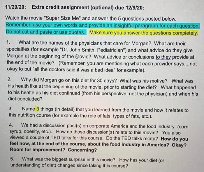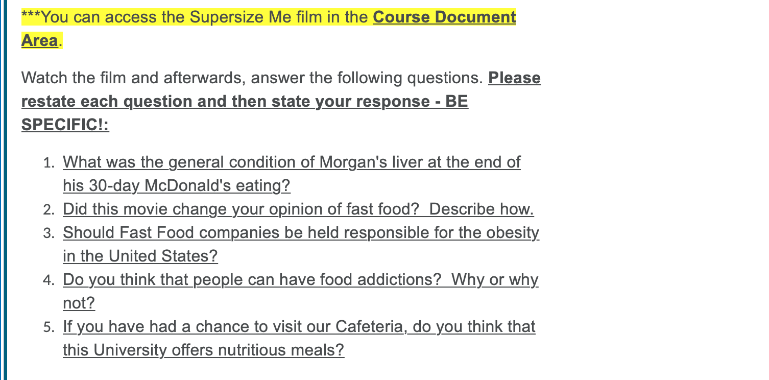 Super Size Me Movie Teaching Resources | Teachers Pay Teachers Supersize Me is great documentary for your Nutrition Unit to shed light on fast food and the unhealthy side effects of eating so much of it!This product is a worksheet (and also a digital worksheet) that follows along with the movie. It's full of questions that students will need to answer as they watch. Also included here is the answer key!